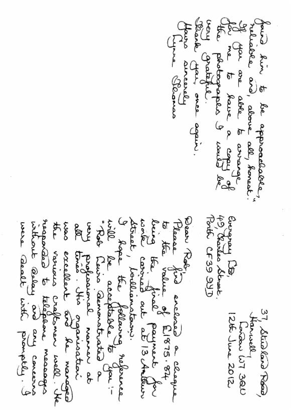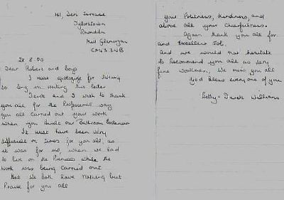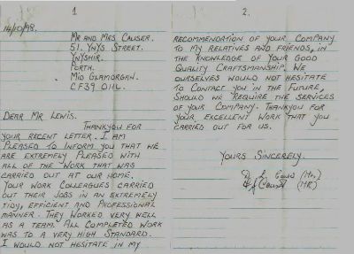 This is just a short letter to thank you for all to work to date on the house and garage. It has been great pleasure to begin improving this property and we have valued the work that your firm has done on it.