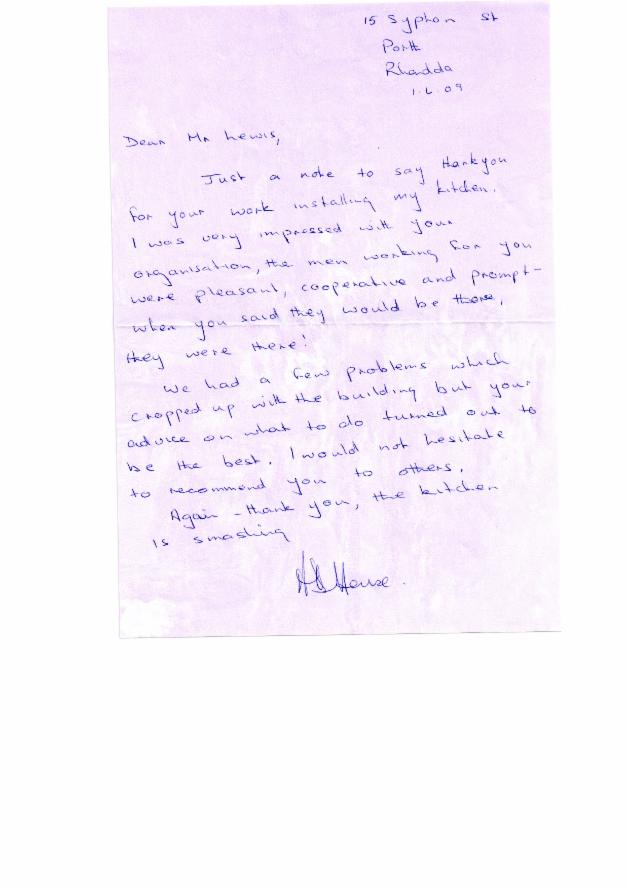 Rob & Gareth, thank you for doing an exceptional and professional job under difficult conditions ( access e.t.c) . Your workforce were polite , hardworking and respectful and deserves such praise. Being a retired joiner through ill health I was wary, but as the work progressed I could see the professional approach to each part of the program and, going above and beyond what was asked for to give us " The Dream Kitchen" Your costings were competitive and fare and I would recommend you to any that asked . Again thank you and may you have a prosperous New Year. Annette and Eddie..