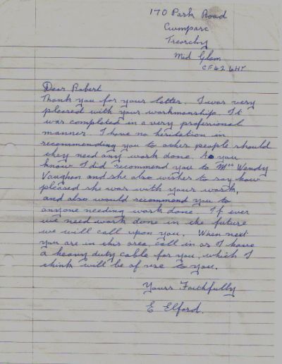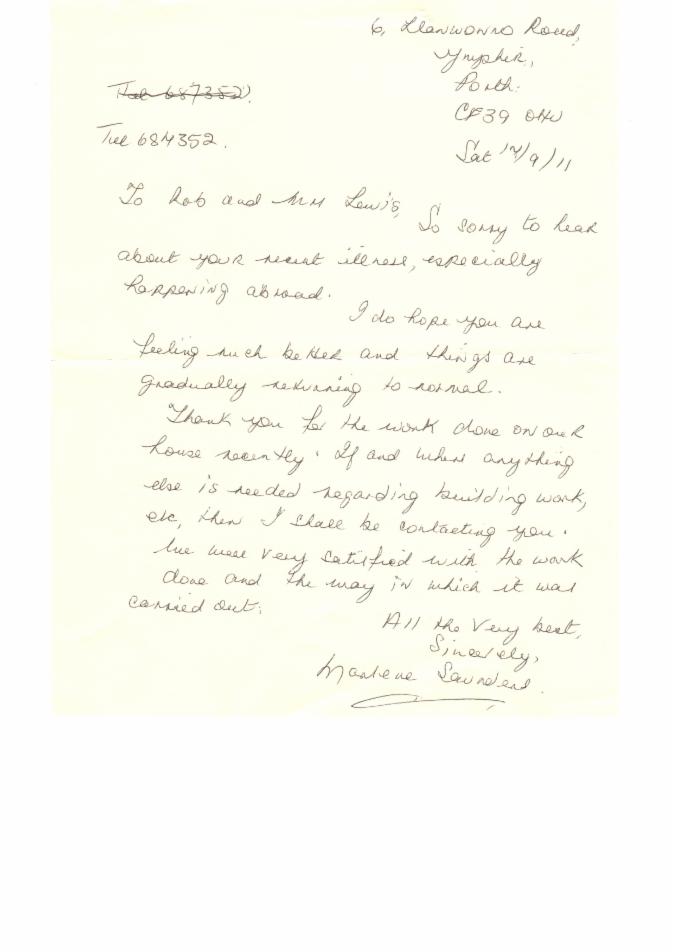 From G. Harrison 136 Ynysddu Road, Pontyclun 10th October 2019