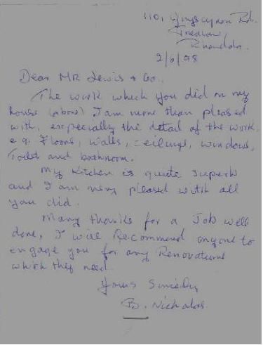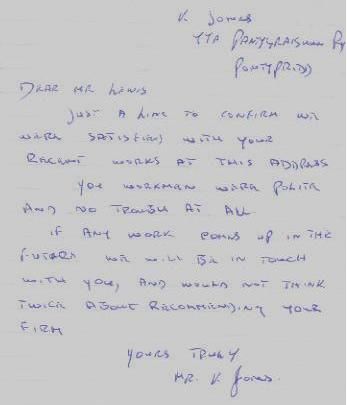 I have found him to be honest and particular in his attitude to his work and his customers, he will not do a “scrappy” job, it is done right or he turns down the request. He will also not tell you that you need something doing if you don’t, just to boost his profits. He also will adjust his estimate if he finds that, at a later date, something is not necessary for the job. He will also be at the end of the phone if you need to see him for an explanation of something you are concerned about. His men turn up when they are supposed to, because he will not take on too much work. This means that if you want him you might have to wait for a start date, but when he says he will be there he is as good as his word.